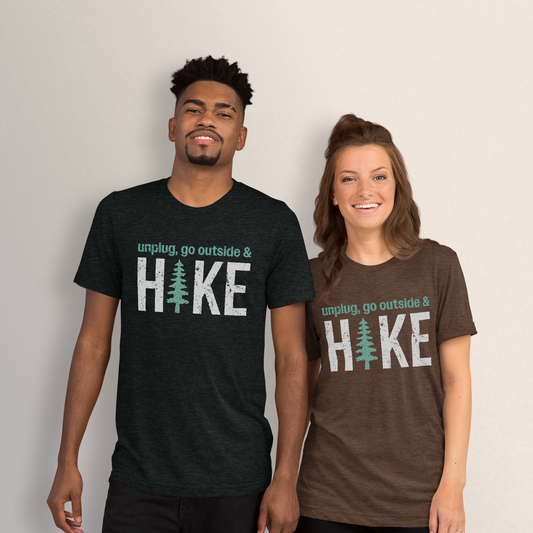 Unplug, Go Outside, & Hike • Tri-Blend Short Sleeve T-Shirt