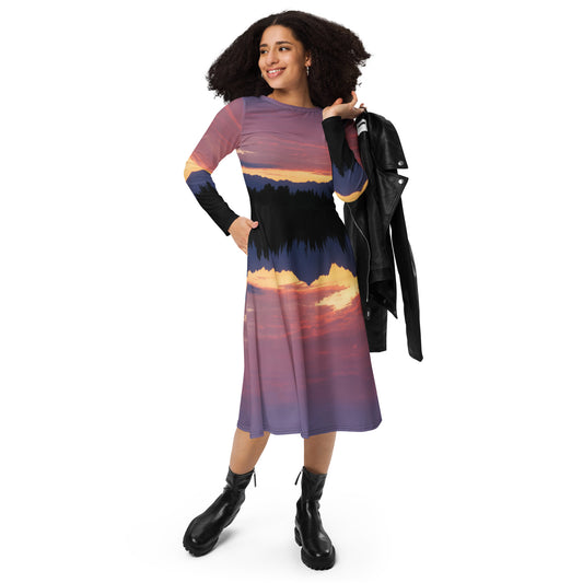 Olympic Mountain Sunset • Long sleeve midi dress with pockets