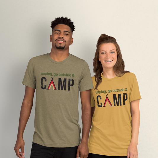 Unplug, Go Outside, & Camp • Tri-Blend Short Sleeve T-Shirt