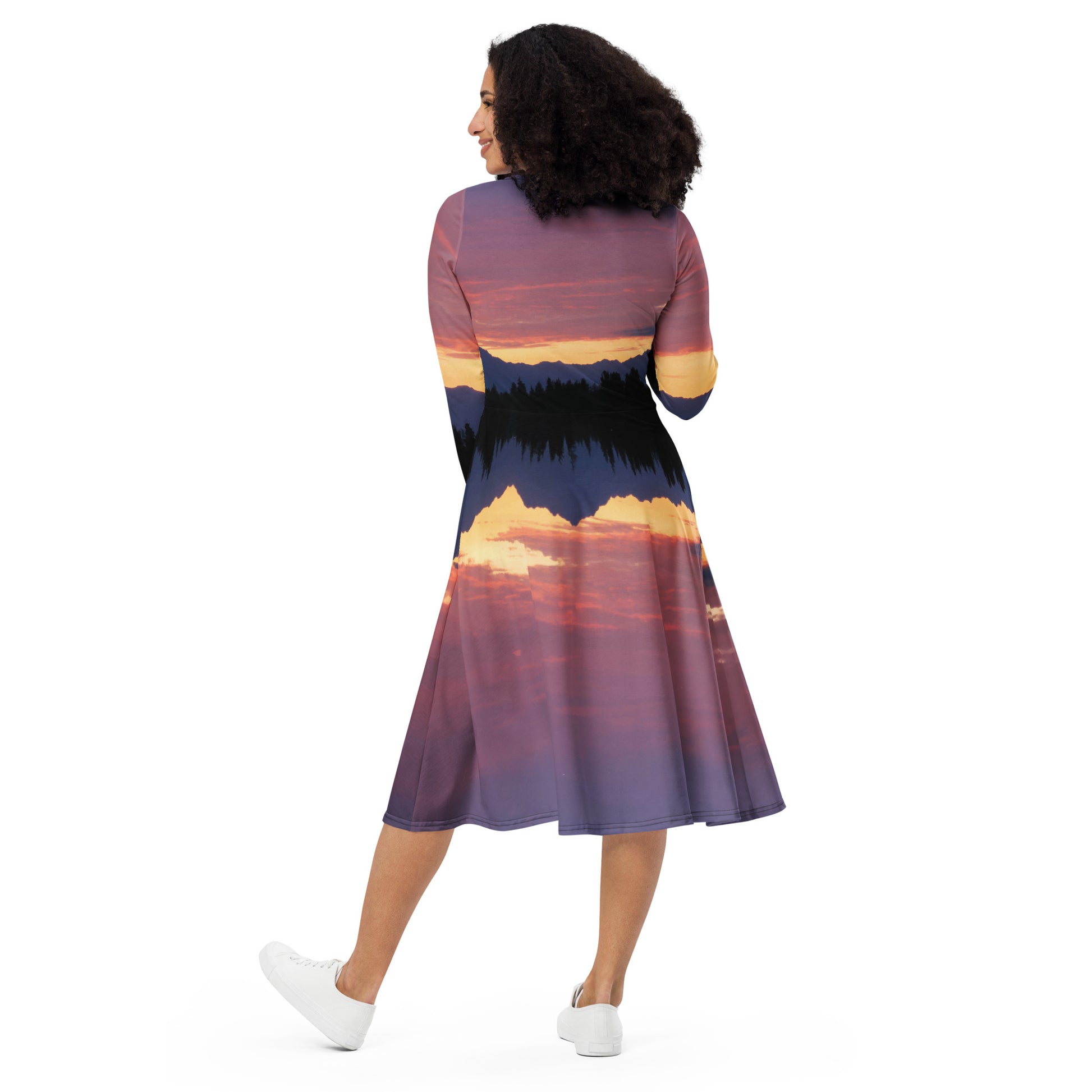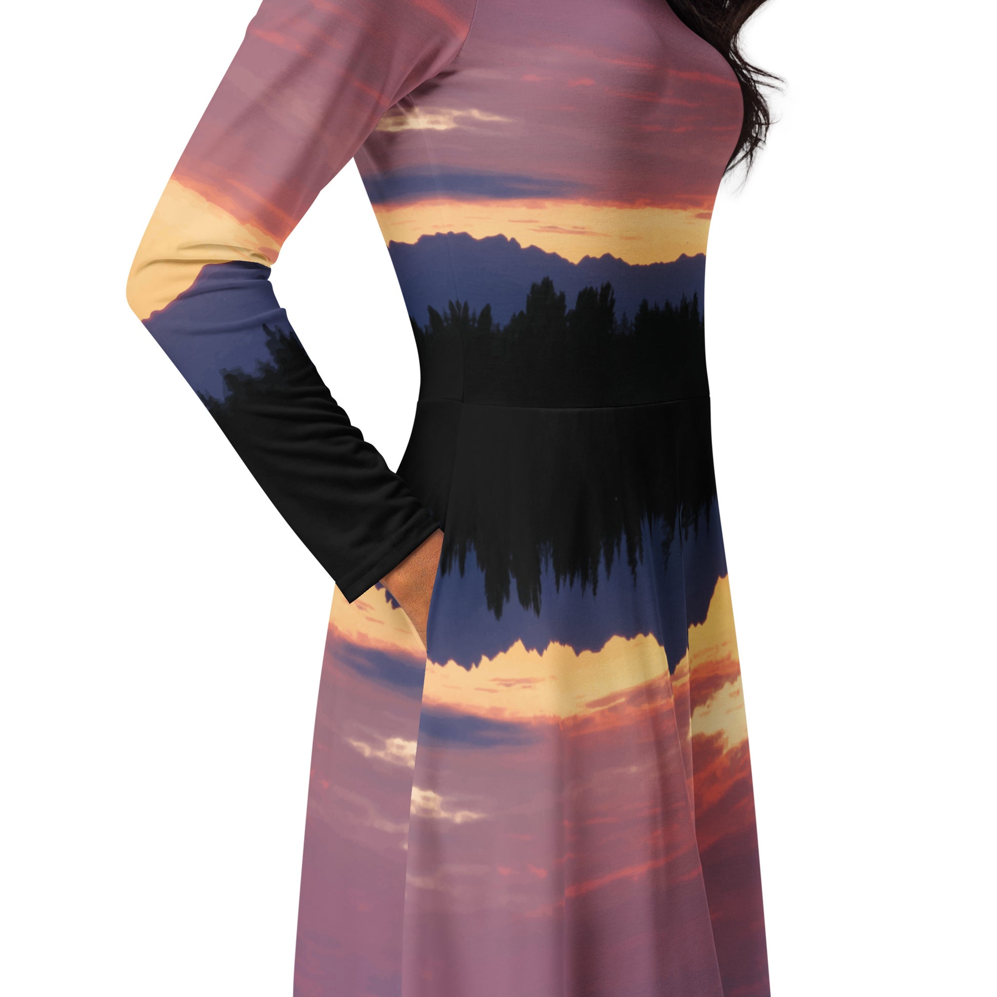 Olympic Mountain Sunset • Long sleeve midi dress with pockets